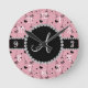 Monogramm hübsch-Rosa-Eiffelturm Runde Wanduhr