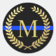 Monogramm-Imitate mit dünner blauer Linie Gold-Kra Runder Aufkleber