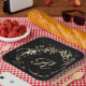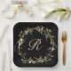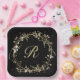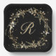 Monogramm in Gold glühender Kranz auf schwarz Pappteller