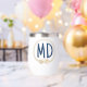 Weißer Seilrahmen mit dunkelblauem Monogramm. Das Monogramm und die Farbe können geändert werden.