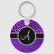 Monogramm Indigo lila Glitzer Neoner lila Leopard Schlüsselanhänger