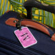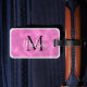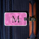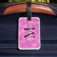 Benutzerdefinierte Gepäckanhänger in Rosa. Abstrakte Kunst im Hintergrund. Bearbeiten Sie den Initial und den Namen, um ihn personalisiert zu machen. Geschenkidee.