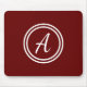 Mauspad mit dunkelrotem Hintergrund und weißem, benutzerdefiniertem Monogramm als erstes.