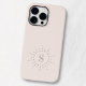 Eleganter iPhone-Gehäuse mit dem Monogramm-Initial in einem Rahmen von Radialpunkten, die einer Sonne ähneln. Sehr hellbraun auf matt rosa. Farben können mit dem Designwerkzeug angepasst werden.