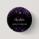 Ein eleganter schwarzer Hintergrund. Dekoriert mit lila Imitaten Glitzer Staub. Personalisieren und fügen Sie Ihren Vornamen, Monogramm-Initialen und vollständigen Namen. Der Name wird mit einem handgeschriebenen Stilskript geschrieben.
