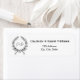 Weißer Hintergrund. Mit einem Kranz dekoriert. Personalisieren Sie Ihren Namen, Ihre Adresse und fügen Sie diese hinzu. Fügen Sie die Initialen Ihrer Vornamen hinzu. Schwarzer Text.