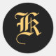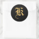 Monogramm "K" goldene Farbe auf schwarz Runder Aufkleber