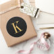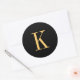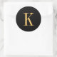 Monogramm K goldfarben auf schwarzem Hintergrund Runder Aufkleber