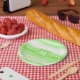 Unregelmäßige horizontale Streifen in Kalkgrün