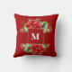Wunderschönes klassisches, kurzgegrammatiertes Kissen für den Winterurlaub mit traditionellen roten Weihnachtspoinsettias.