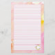 Hübsche pastellfarbene Schreibwaren in Monogramm C mit leuchtenden Wildblumen in orangen, blauen, roten, grünen, rosa und gelben Farbtönen, die mit einem Waschbecken in Rosa und Pfirsichfarben versehen sind.