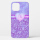 Monogram Lila Glitzer Heart 2 Tone iPhone 12 Case mit Ihrem ersten. Zwei Töne Design mit einem Bling Heart Design. Ein tolles Geschenk für jemanden, den man schwer kaufen kann.