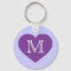 Dieser Schlüsselanhänger weist ein formschön lila Herz auf, das durch einen Monogramm-Initial überlagert wird.