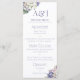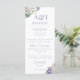 Dieses elegante Hochzeitsmenü besticht durch ein elegantes Blumenmotiv mit schönen Hydrangea-Blume. Im oberen Teil sind zwei Muster-Monogramm-Initialen gedruckt. Sie können das Menü so anpassen, dass Sie Ihre eigenen Initialen und Ihre eigenen Speisekarten eingeben können. Ein zarter Strauß mit lila und weißen Hydrangeas in Aquarellfarbe ist oben rechts und ein weiterer unten links.