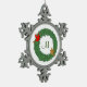 Monogramm mit Kardinälen im Evergreen Kranz Schneeflocken Zinn-Ornament