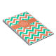 Modernes Zickzack Streifenmuster Notizbuch in den Sommerfarben Aqua, Korallen und Weiß wird mit einem Korallenband und passendem Rundrahmen ergänzt. Personalisieren Sie Ihre Texte mit Ihrem Monogramm oder einem anderen Text, indem Sie die Schaltfläche "Anpassen" auswählen und Ihren Text in der Designvorlage eingeben. Sie können Schriftart und Schriftart ändern und den Text verschieben, um ihn in den Rahmen einzufügen.