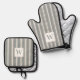 Monogramm Modernes Streifen, Minimalistisch blau & Ofenhandschuh & Topflappen-Set