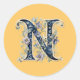 Monogramm N Blumendesign AI-generiert Runder Aufkleber