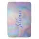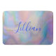 Eine wunderschöne Badezimmermatte mit Monogramm-Namen in blau auf Perlmutt.