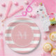 Monogramm Teller für die Bezeichnung in Rosa und Weiß Streifen