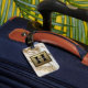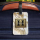 Monogramm Name Personalisierter Gepäckanhänger aus weißem und goldenem Marmor