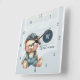 Erstellen Sie eine spezielle Wanduhr mit Ihrem Familiennamen und Monogramm. Genießen Sie ein entspanntes Denim-Ambiente. Weiche Blau-, Bräune- und Weißtöne sorgen für ein entspanntes und gemütliches Ambiente. Teil der Bear Jean Baby Designkollektion. Verwenden Sie die Vorlage zum Personalisieren.