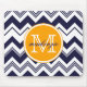 Monogramm-Namensmarine-Blau-weißes Zickzack Muster Mousepad