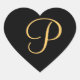 Monogramm P, goldfarbene Anfangsfarben P auf schwa Herz-Aufkleber