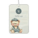 Erstellen Sie einen speziellen Lufterfrischer mit Ihrem Familiennamen. Wechseln Sie einfach zu Ihrem gewünschten Initial und Namen. Verwenden Sie die Vorlage zum Personalisieren. Teil der Bear Jean Baby Designkollektion.
