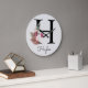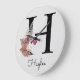 Monogramm Pink Boho Initial H Large Cl Große Wanduhr