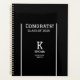 Hier ist eine großartige Art, Ihren Absolvent zu feiern. Benutzerdefinierter schwarz-weißer Planer enthält den Text "Glückwunsch! Klasse 2025." Es hat einen klassischen schwarzen Hintergrund und inspirierende Phrase. Auch zeigen Sie Ihr gewünschtes Monogramm und Ihren Namen an. Verwenden Sie die Vorlage zum Personalisieren.
