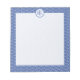 Personalisieren Sie dieses Notizblock, indem Sie Ihre Initialen hinzufügen, um ein Monogramm im Bicyle-Rad 'label' zu erstellen. Der Hintergrund ist ein blaues geometrisches Muster von Fahrradrädern mit einem großen Schreibbereich, unter dem das Muster noch sichtbar ist.