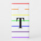 Fun geometrisches modernes Design mit einem einfachen Gefühl. Stripte Linien in den Farben des Regenbogenrot, orange, gelb, grün, blau, indigo, violett vor knusprigem weißem Hintergrund. Frisches Sommermuster. Personalisieren Sie Monogram initial in schwarzem Text. Originale Entwürfe von TamiraZDesign.