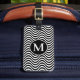 mit Monogramm Wellen mit schwarzem Rundrahmen gemusterter Gepäckanhänger