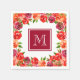 Blumenmuster aus roten, orangefarbenen und bordeauxfarbenen Blume und grünen Blätter, die mit einem Monogramm, Initialen, Namen oder Sprichwort personalisiert werden können. Ideal für ein Party, eine Geburtstagsfeier, ein Geschenk, einen Hochzeitsempfang, eine Hauswärmespende oder für Ihre eigene Wohngestaltung.
