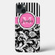 Monogramm, rosa, schwarz, weiß gestreiftes Damasku Case-Mate iPhone Hülle