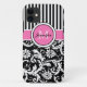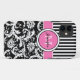 Monogramm-rosa Schwarz-weißes gestreiftes Damast Case-Mate iPhone Hülle