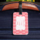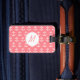 Mit Monogramm rosa und weißer nautischer Anker gemusterte Gepäckanhänger. Das Design zeichnet sich durch ein weißes nautisches Ankermuster auf rot-rosa und einen weißen Kreis in der Mitte mit Ihrem benutzerdefinierten Initial aus.