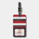Monogramm | rot, Schwarz-weiße Streifen Gepäckanhänger