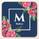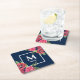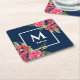 Monogramm Rot und Rosa Blume Dunkelblau Rechteckiger Pappuntersetzer