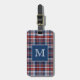 Mit Monogramm Gepäckanhänger mit rotem, weißem und blauem Tartan-Muster und Ihr anfängliches gerahmte in blauem Quadrat mit weißem Rand.