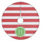 Monogramm rote und grüne Preppy-Streifen Fleece Weihnachtsbaumdecke