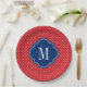 Monogramm rote weiße und blaue Polka-Punkte Pappteller