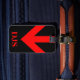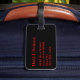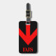 Gepäckanhänger mit einem roten Fahrtenpfeil, Monogramm/Name und Adressinformationen auf schwarzem Hintergrund. Personalisieren Sie Ihre Monogramm-Initial(en)/Name, Name und Adressinformationen mithilfe der einfachen Vorlagen. Schriftart Farbe, Schriftart Stil, sind Schriftart Größe sind anpassbar.