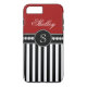 Monogramm-rotes schwarzes Streifen-Namensmuster Case-Mate iPhone Hülle