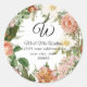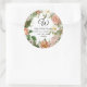 Runder Rücksendeadresse Umschlag Aufkleber mit Ihrem Monogramm, Name und Anschrift. Perfekt um sowohl eine dekorative Touch und Siegel Umschläge für Hochzeitsfeiern und Brautparty-Party hinzuzufügen. Elegante Vintage botanische Kunst in modernem Design. Korallenpfirsich, rosa mit weißen, eleganten Blume, entworfen von Audrey Jeanne Roberts. Urheberrecht.