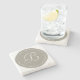 Untersetzer mit einem runden, grau-monogrammfarbenen Aluminiumstreifen mit weißem Punktakzent. Personalisieren Sie Ihre Monografie mit der einfachen Vorlage. Schriftart, Schriftart und Schriftart sind individuell einstellbar. Die perfekte Art Ihre Möbel zu schützen.