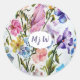 Monogram Celebration Sticker - Verwendung auf Umschlägen oder Packungen - Schöne Whimsical-Blume, Blüten und Schmetterlinge, erstellt mit Hundepaw-Drucke kreativ Aquarell vom Designer gemalt. Farbenfroh, delikat, aber lebendig und lustig. Sie werden nie etwas wie diese Drucke sehen, da sie exklusiv für den Designer sind, also einzigartig und anders sein und Ihre Freunde und Familie mit diesem wunderschönen Design mit einem rosa Schmetterling erstaunen. Karo aller passenden Zubehörteile