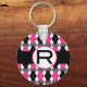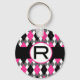 Monogramm-Schlüsselanhänger mit Hot-Pink- und Schwarz-Raute-Design