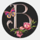 MONOGRAMM SCHREIBEN B MIT ROSE UND SCHALTFLÄCHE RUNDER AUFKLEBER